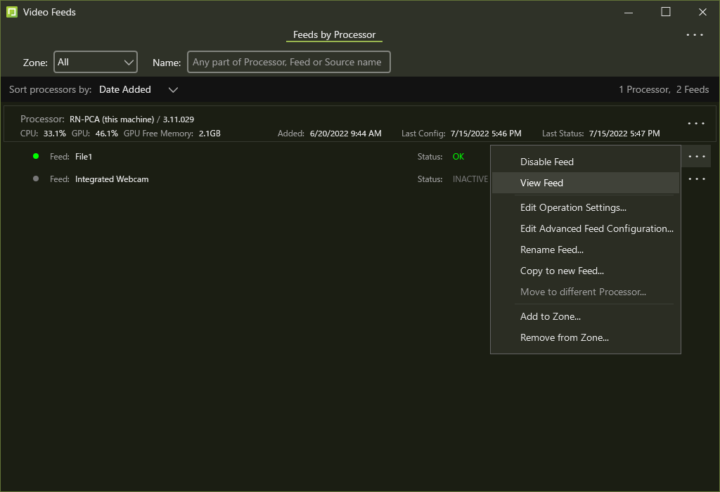 This article explains how to process MP4 or other video files with Video Recognition Gateway (VIRGO) video feeds. While it's possible to process files in the Video File Analyzer window in the SAFR Desktop Client, it can be useful to process files in the background using VIRGO (available thru the Video Feeds window) for the following reasons: