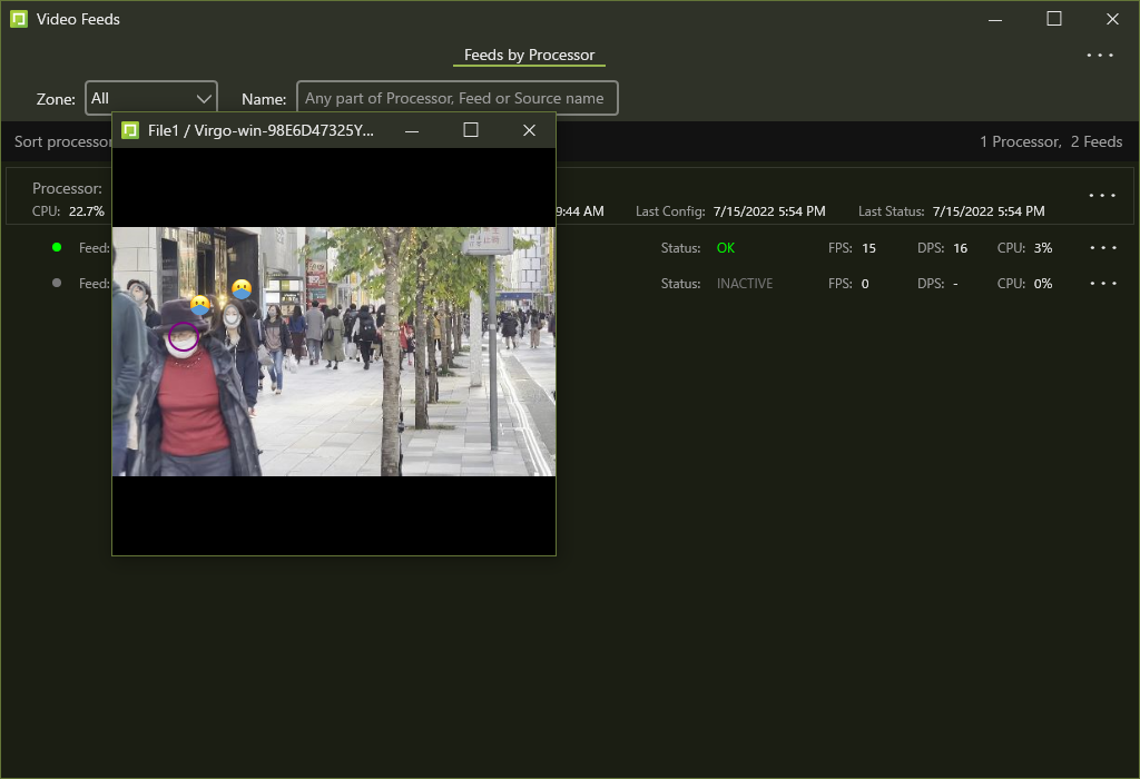 In this section, I show you how to play a video file as virgo feed, with SAFR Destkop. "SAFR Destkop Lite" doesn't have the virgo component, so you need to use "SAFR Desktop Full Edition".