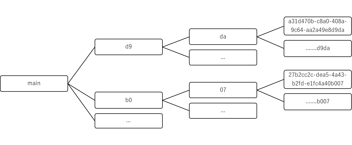 So if the object ID is "a31d470b-c8a0-408a-9c64-aa2a49e8d9da", then the first layer is "d9" and the second layer is "da". Under the second layer, all objects ended with "d9da" are stored.