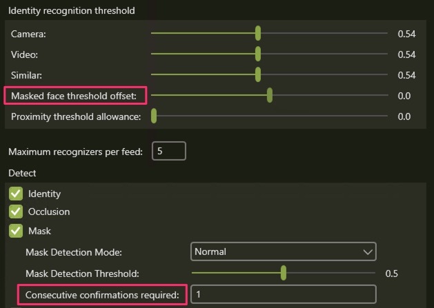 - Reduce “Masked face threshold offset” slightly (e.g. to -0.05 or -0.1)