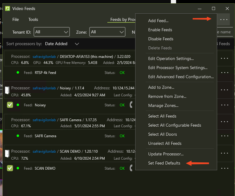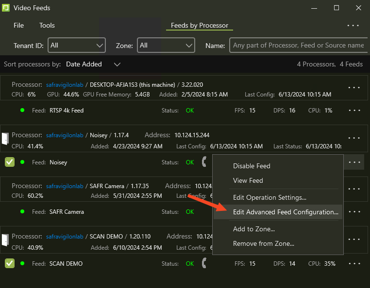 1. Go to SAFR Desktop > Tools > Video Feeds