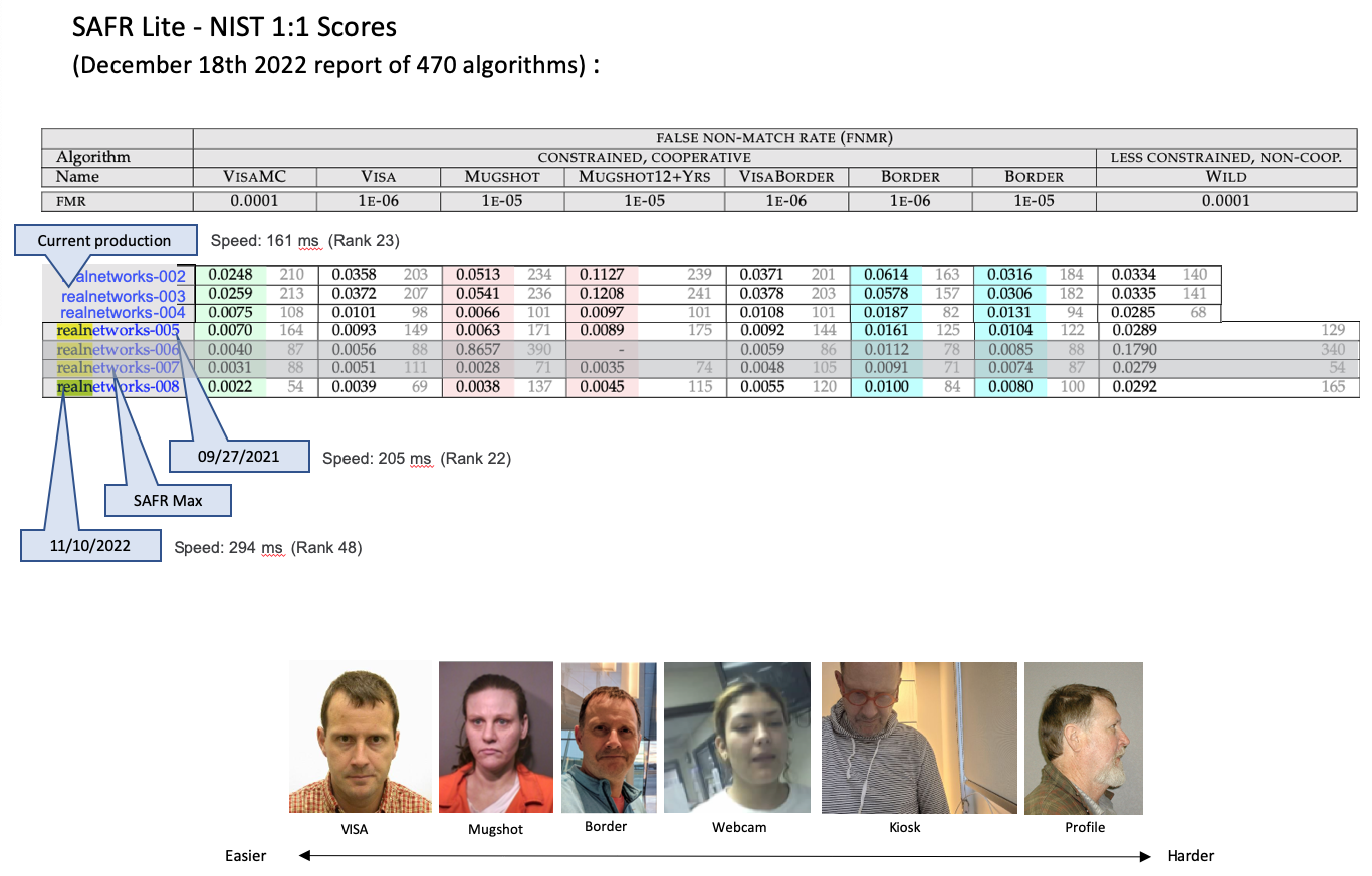 How does SAFR compare to other facial recognition algorithms? SAFR latest report show SAFR Lite algorithm performing at speed much faster than competition with high accuracy: