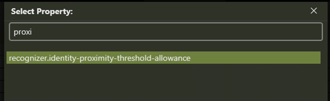 If you wish to not get partial match reports, set the proximity threshold to 0. Use the same process as above but set property "recognizer.idenity-proximity-threshold-allowance is as follows: