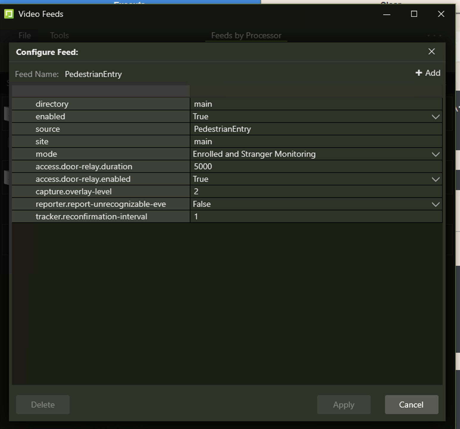 Go to Video Feeds window