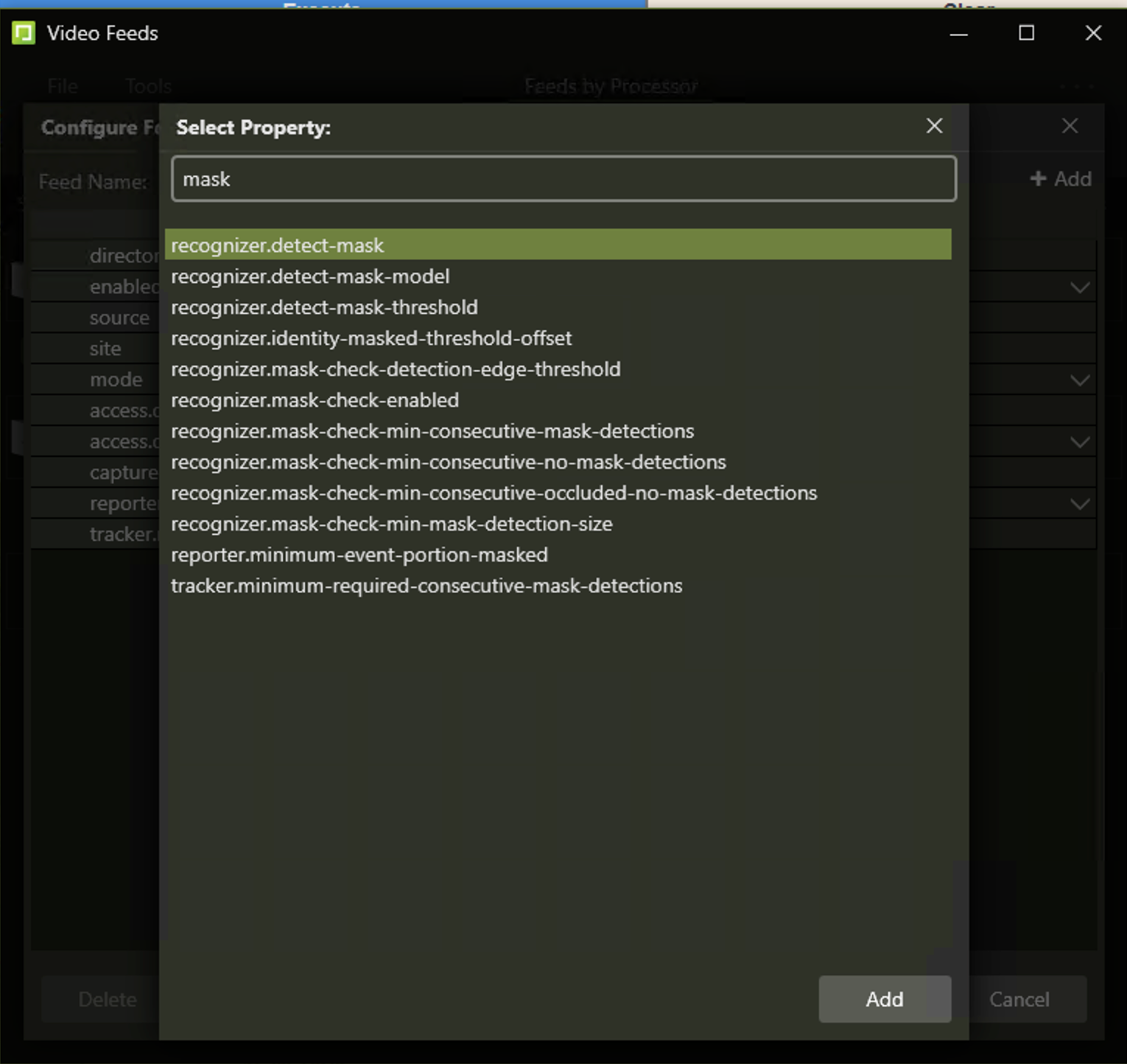 Search for "mask" and click "recognizer.detect.mask" and click Add button