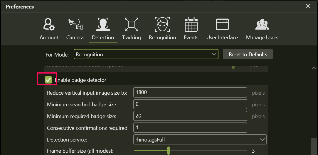 Enable "badge detector" in SAFR/Preferences/Detection for the correct video mode that you want to use. Or set detector.detect-badges to true in the feed config if you use virgo.