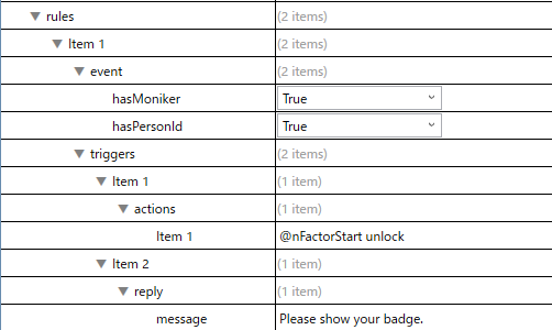 Next you need to define a rule to start nFactor test. In this example we start the nFactor process for events with personId, moniker.