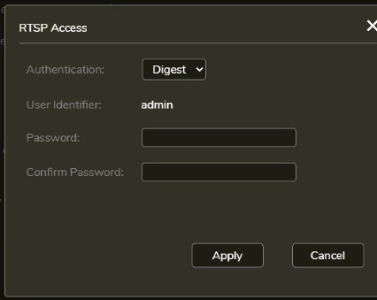 Leave Authentication as Digest. For convenience in recording stream as described below, you may want ot keep the password to just letters and numbers.