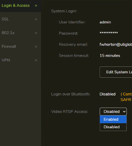 Enable RTSP feed from SAFR Reader or SAFR Camera as follows:
