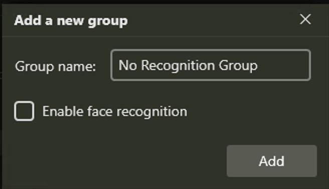 1. Go to People > "..." > Manage Groups and create a new group and uncheck "Enable face recognition" as follows: