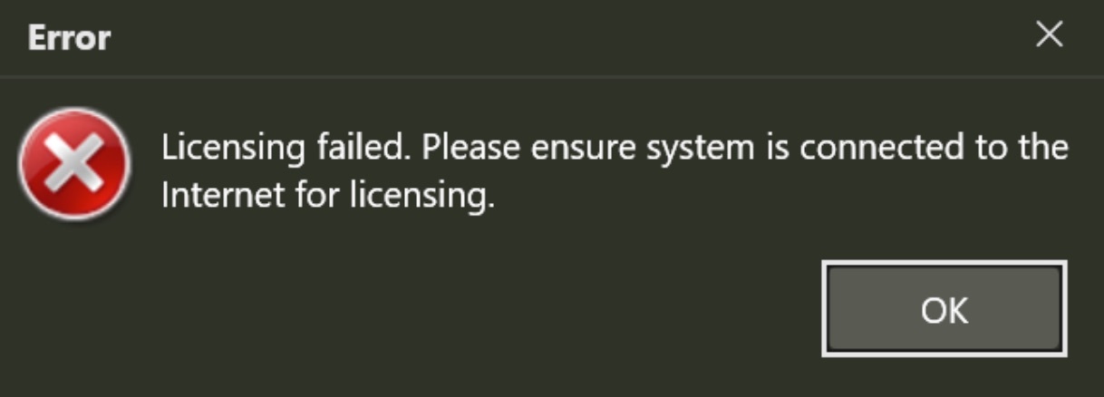 The following error is sometimes likely due to a firewall blocking the SAFR Server from making a connection to the licensing server in order to acquire a license.