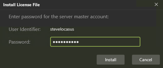 3. Click “Install License File”. You will be prompted for your SAFR account password.
