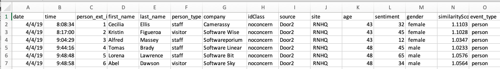 This article describes how to create a Python script to log recognition event information to a Comma Separated Values (CSV) file. The script is generalized so that you can pass any number of fields along with the column labels. This way, you can change the columns that are written simply by editing the SAFRActions.config file.