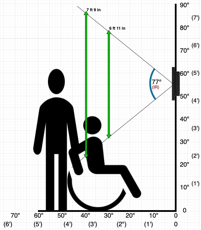 The image below shows scan mounted at 55” to give you a sense of how we do at ideal mounting height. Mounting SAFR SCAN at this height result in the fasted performance.