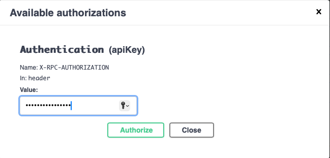 Be sure to be careful when entering your credentials; you'll get a 401 error when submitting API calls if you mistype your credentials. - Click the **Authorize** button and then close.