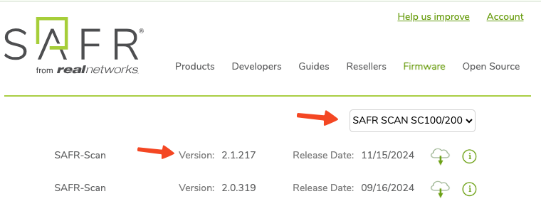 - Download the latest firmware from http://safr.real.com/firmware (sign in with your SAFR Software Download account)