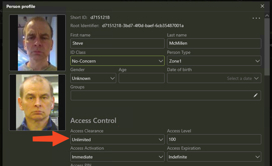 1. Set Access Clerance for person to Unlimited (this is more intended for access control – not the best practice for camera)