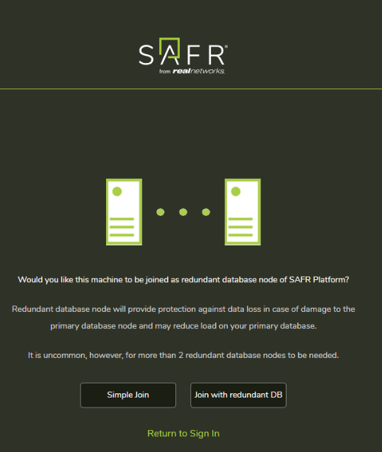 If you click "Join with redundant DB", then web console tries to connect this node to the primary (SAFR Master Host).